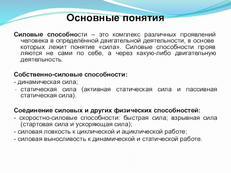 определённой двигательной деятельности, в основе которых лежит понятие «сила». Силовые