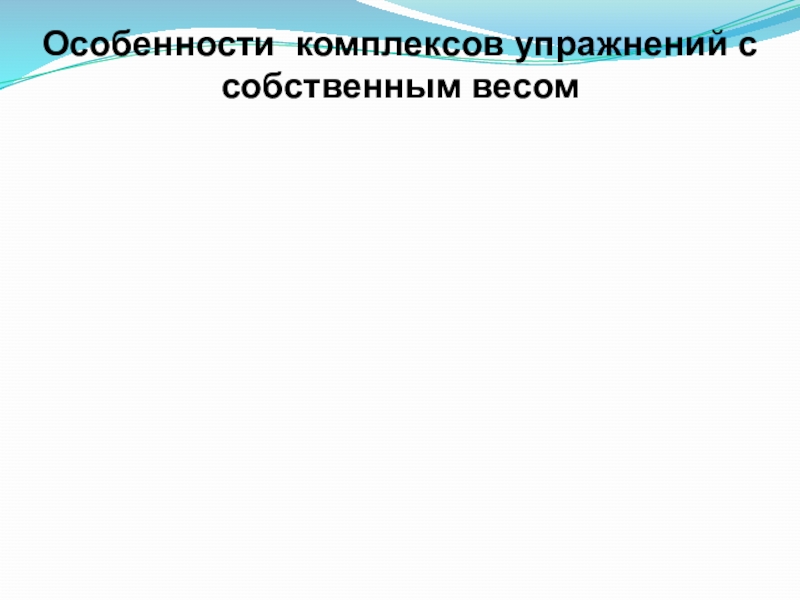 Слайд 10Особенности комплексов упражнений с собственным весом
