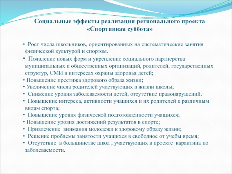 Социальные эффекты реализации регионального проекта «Спортивная суббота»