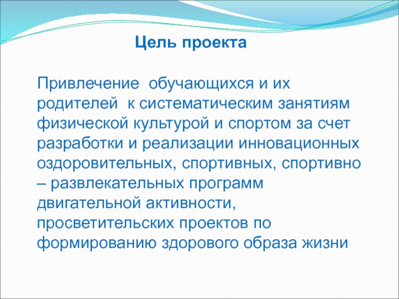 спортивных, спортивно – развлекательных программ двигательной активности, просветительских проектов по формированию здорового образа жизни