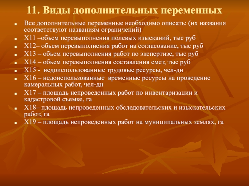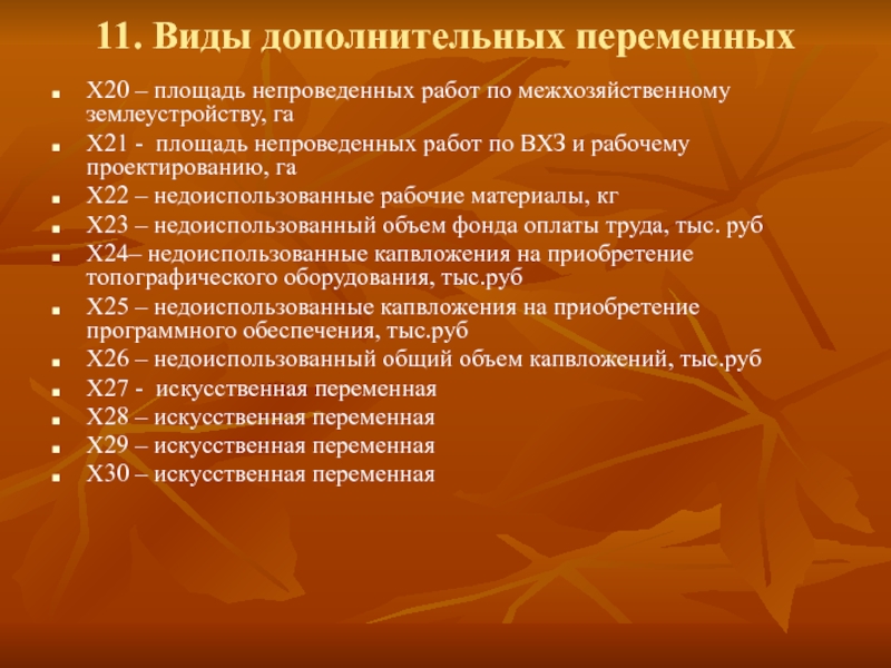 11. Виды дополнительных переменных