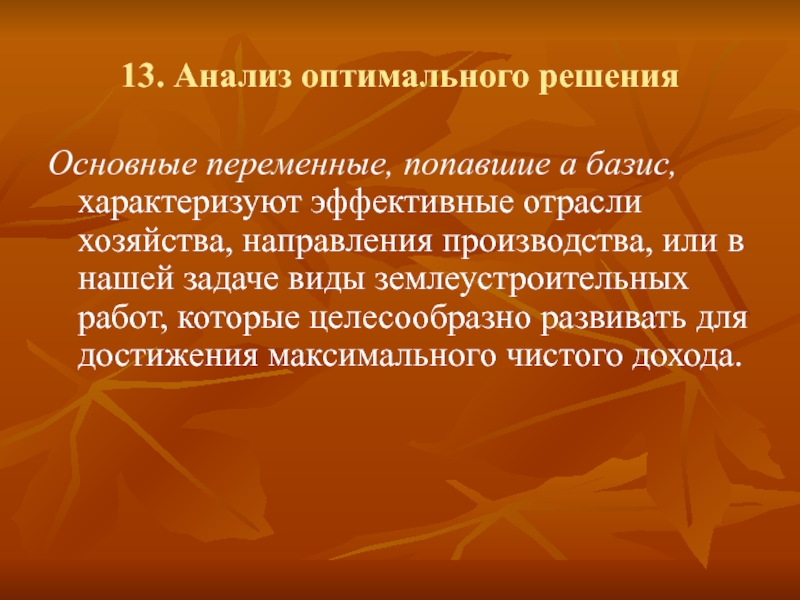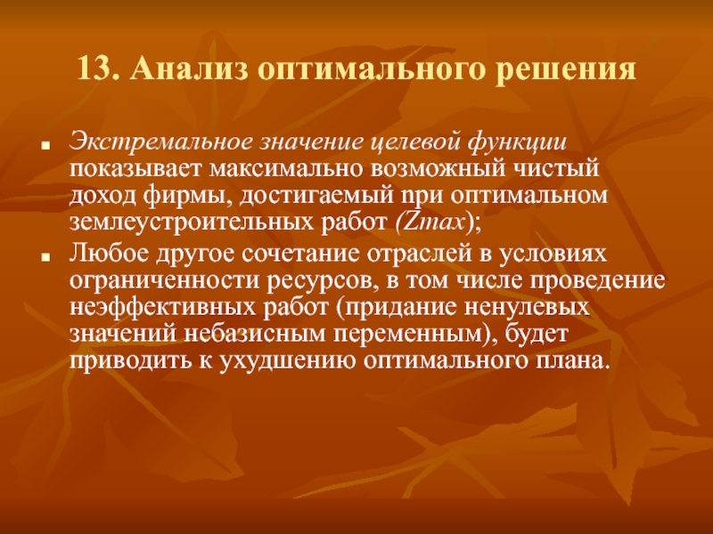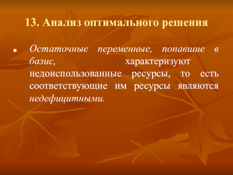 13. Анализ оптимального решения
