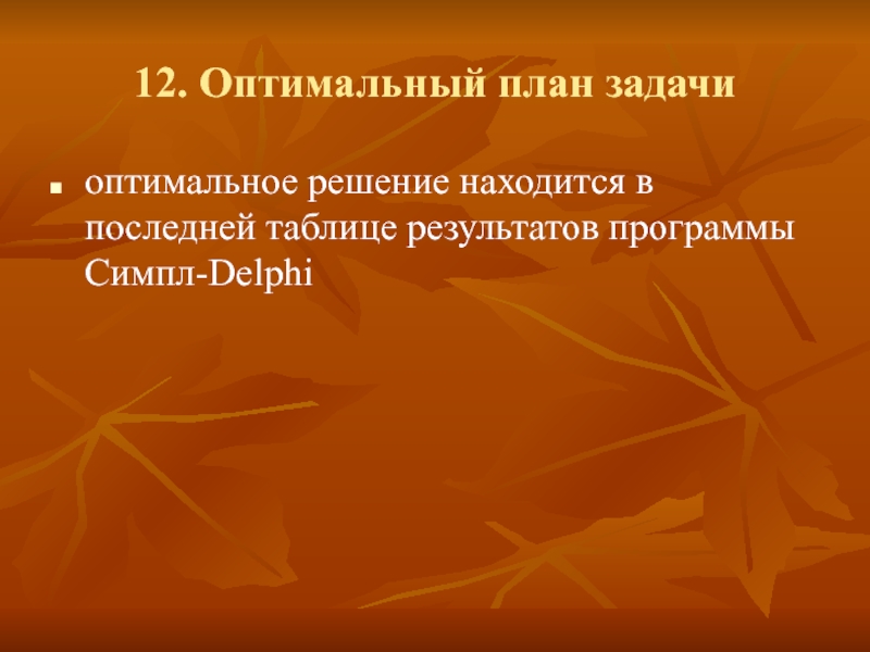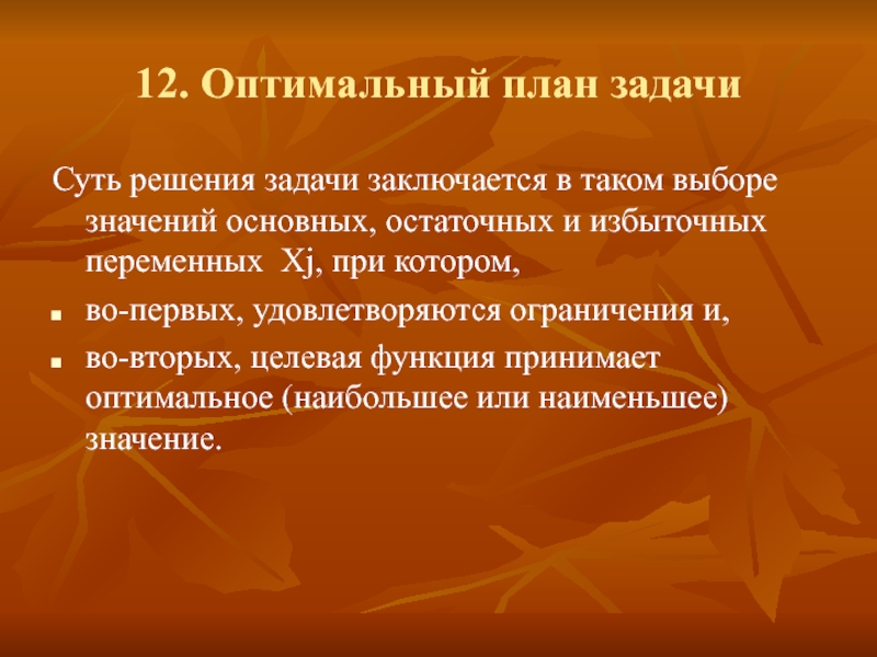 12. Оптимальный план задачи