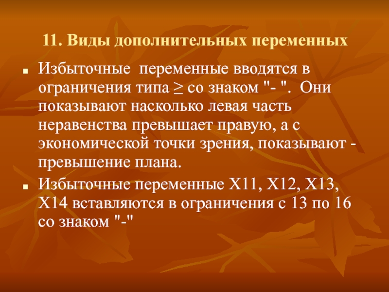 Избыточные переменные, вошедшие в базис, характеризуют сверхплановое