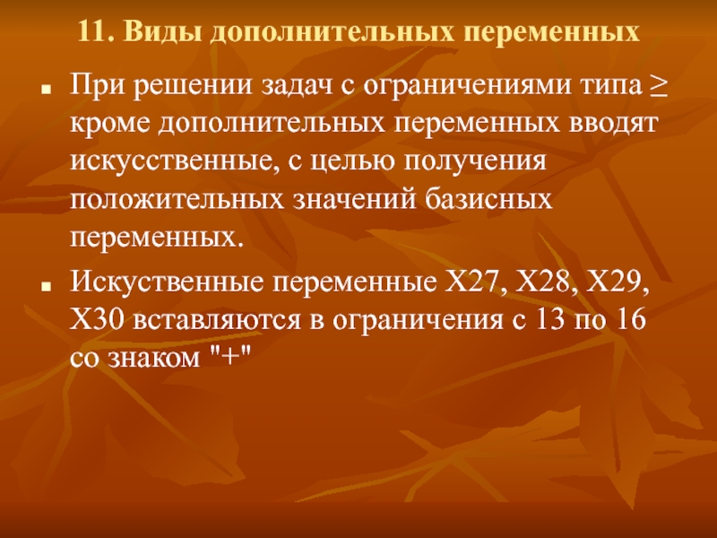 Х27 - искусственная переменная