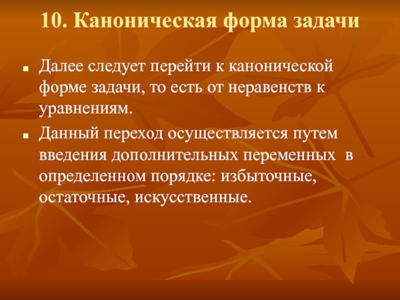 10.Каноническая форма задачи