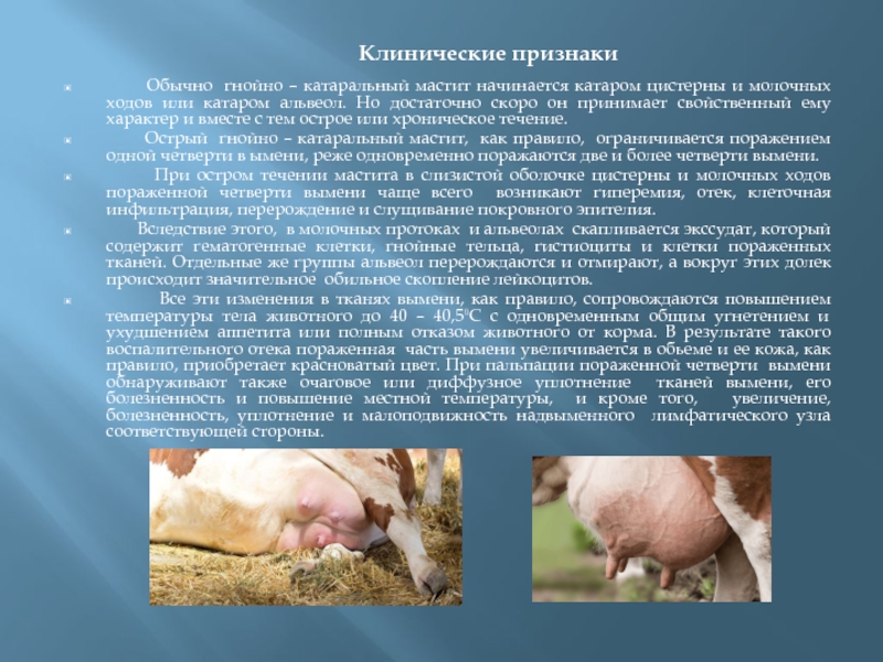 «Гнойно - катаральный мастит правой передней четверти вымени у коровы »
