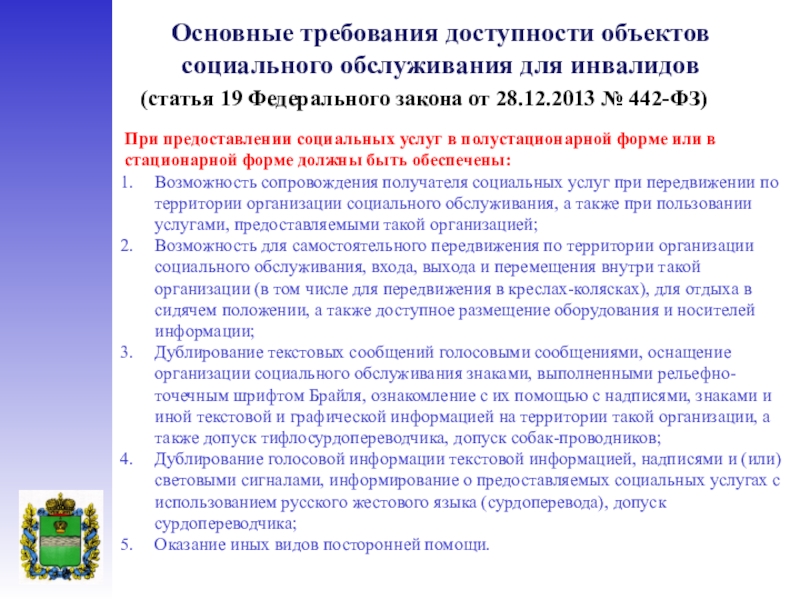 закона от 28.12.2013 № 442-ФЗ «Об основах социального обслуживания граждан