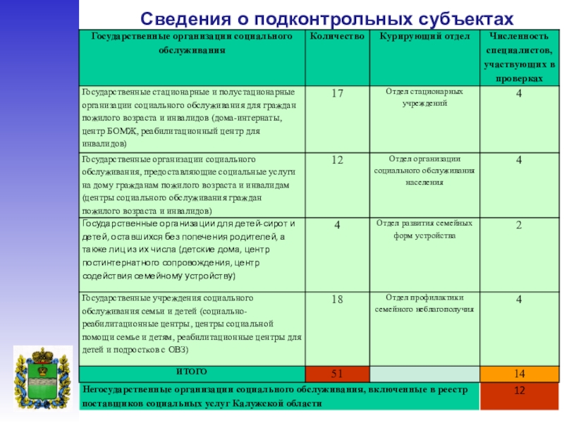 обслуживания, находящихся в ведении министерства по делам семьи, демографической и социальной политики Калужской области».