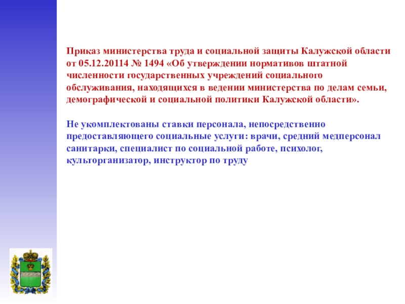 № 1494 «Об утверждении нормативов штатной численности государственных учреждений социального
