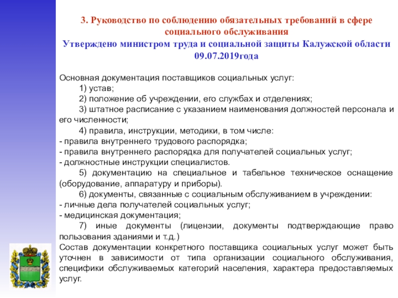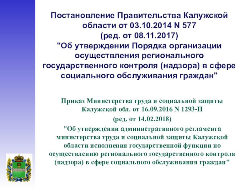 Слайд 8Приказ Министерства труда и социальной защиты Калужской обл. от 16.09.2016
