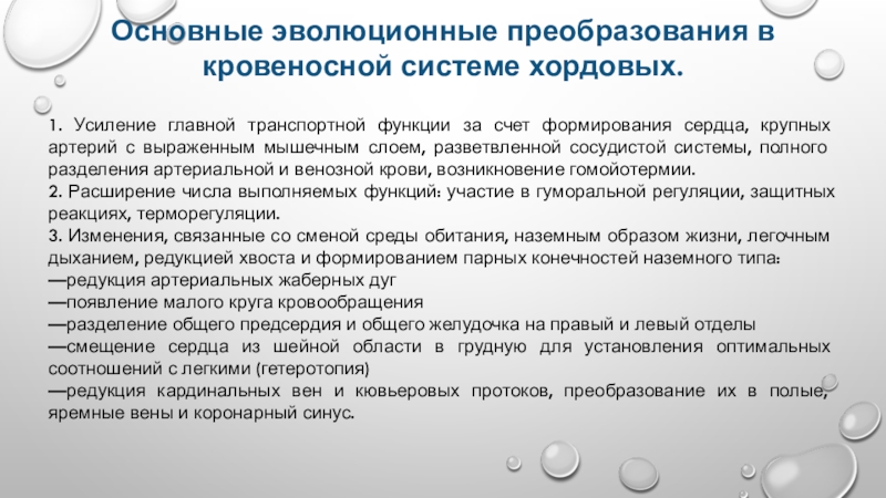 Основные эволюционные преобразования в кровеносной системе хордовых.
