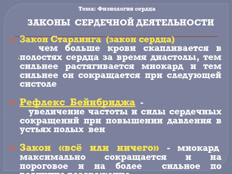 ЗАКОНЫ СЕРДЕЧНОЙ ДЕЯТЕЛЬНОСТИ