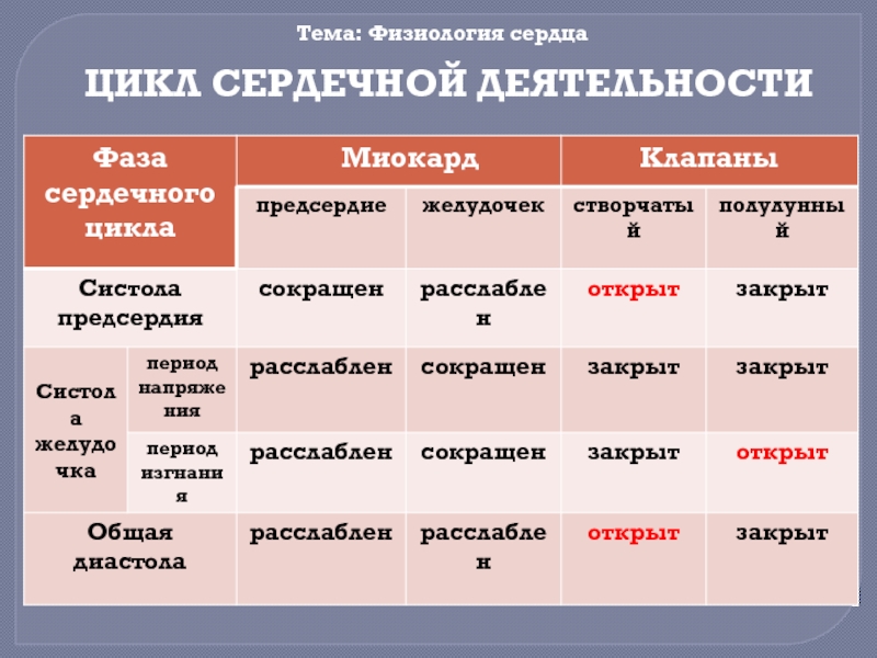 Тема: Физиология сердца