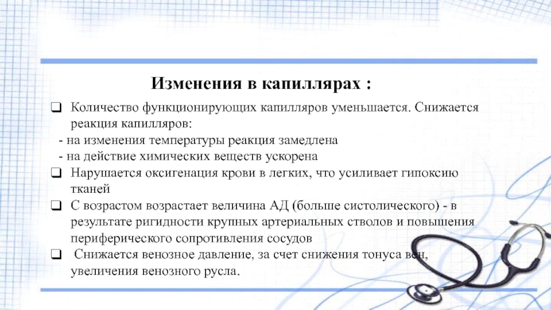 количества функционирующих капилляров. Нарушается правильное распределение меланина.