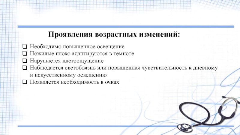 Уменьшается секреция слезных желез, что ведет к сухости оболочек и снижению сопротивляемости оболочки глаз к инфекции.