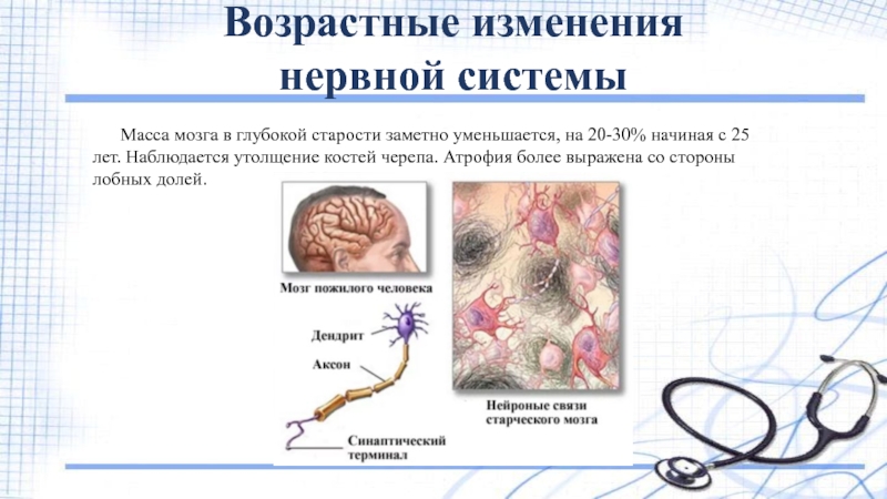 старости заметно уменьшается, на 20-30% начиная с 25 лет. Наблюдается