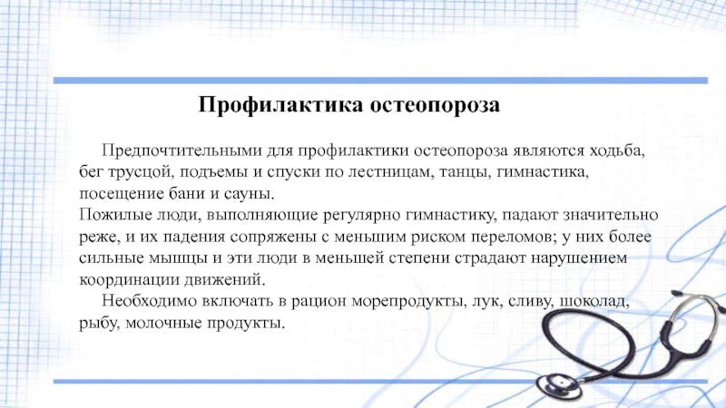 Предпочтительными для профилактики остеопороза являются ходьба,