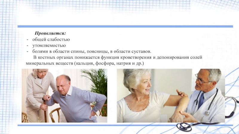 Основными субъективными проявлениями старческих изменений опорно-двигательного