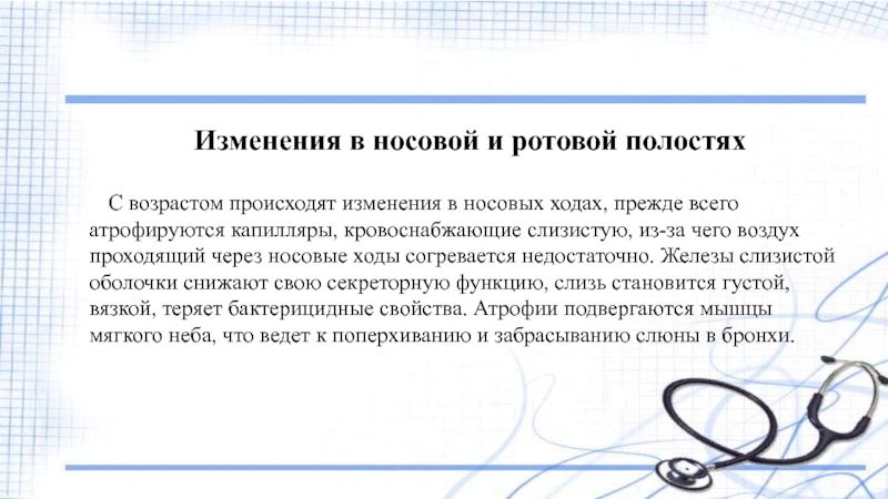 Старческие изменения охватывают верхние дыхательные пути, бронхиальное