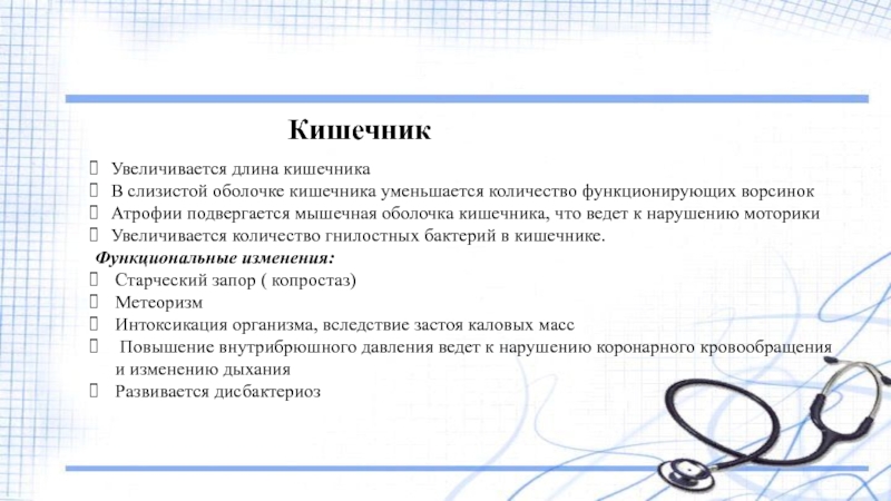 В слизистой оболочке кишечника уменьшается количество функционирующих
