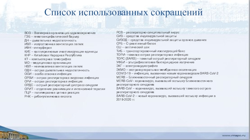 Слайд 49Список использованных сокращений