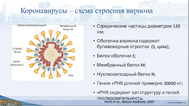 Коронавирусы – схема строения вириона