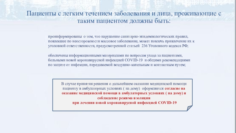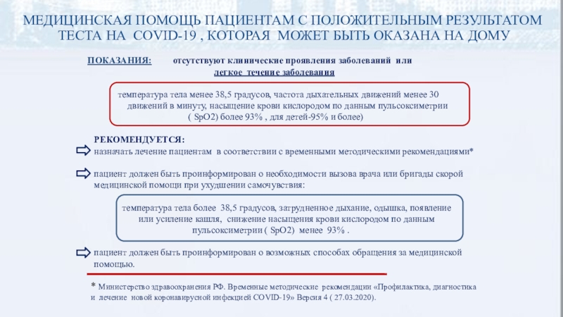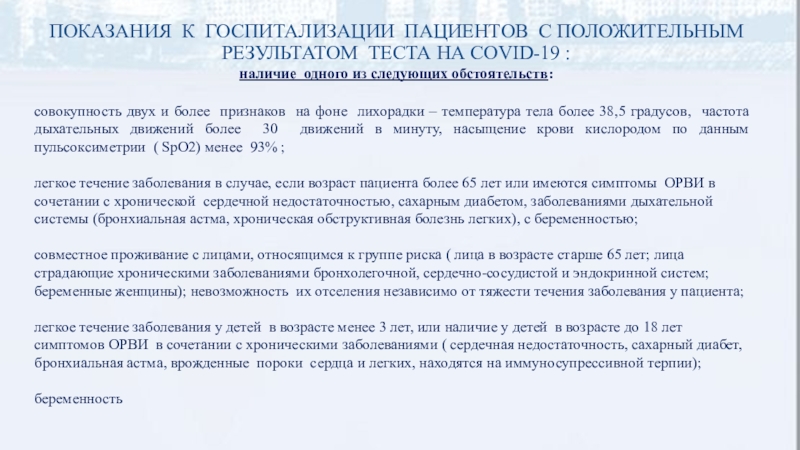 Основные принципы организации медицинской помощи пациентам с инфекционным заболеванием, вызванным коронавирусом штамма COVID-19, в медицинских организациях и их структурных подразделениях, оказывающих медицинскую помощь в стационарных условиях.