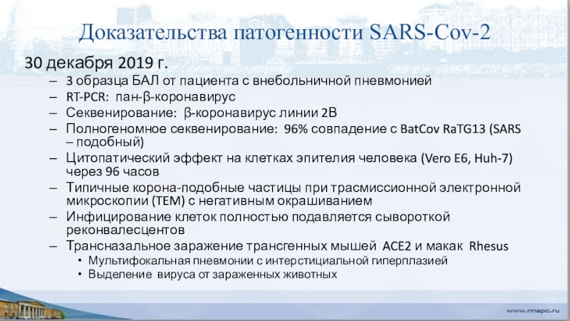 Слайд 13Доказательства патогенности SARS-Cov-2