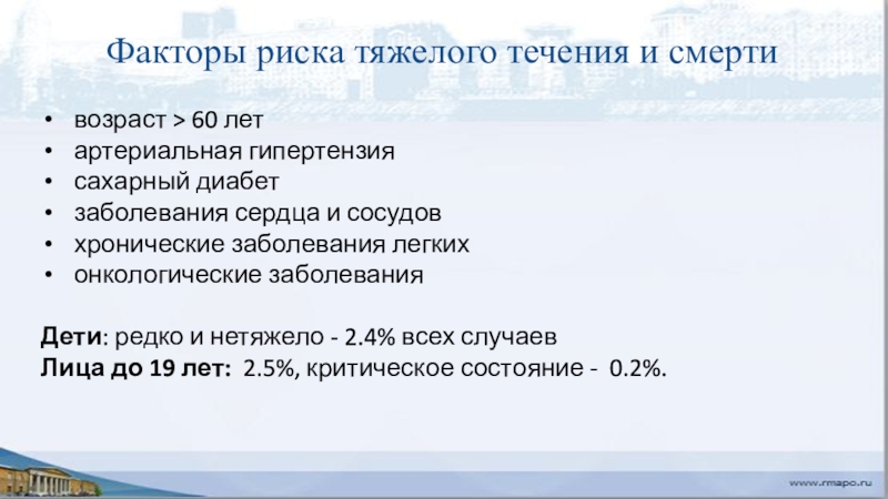 COVID-19 – инфекция, вызванная новым коронавирусом SARS-CoV-2