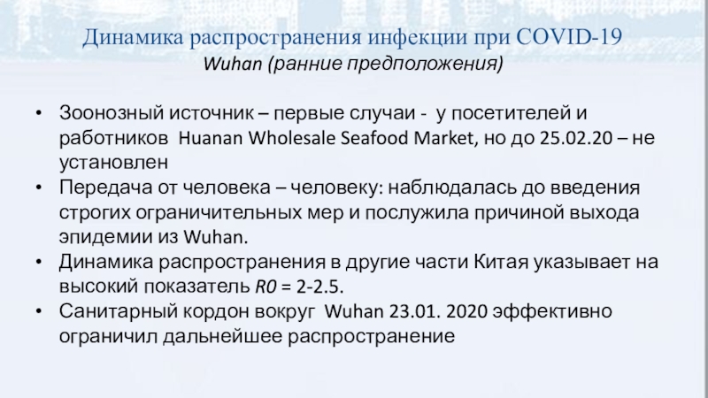 (предполагается, что первые случаи заболевания были связаны с посещением рынка