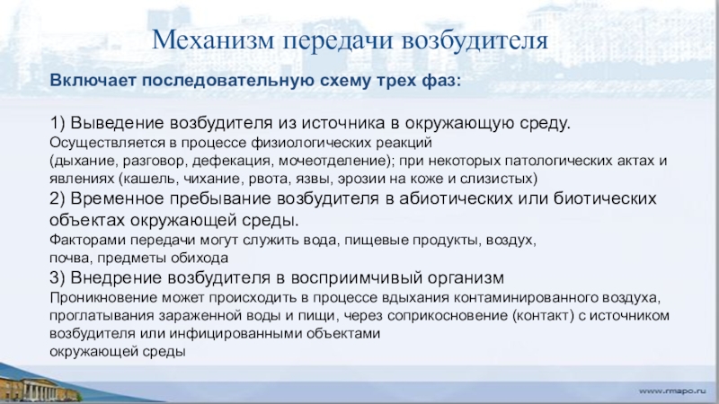 Слайд 7Механизм передачи возбудителя