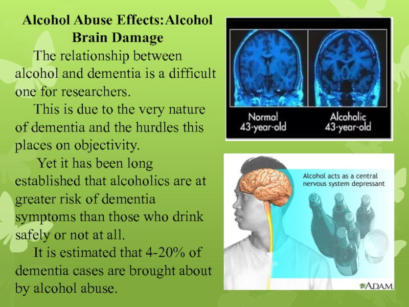 Слайд 13Alcohol Abuse Effects:Alcohol Brain Damage