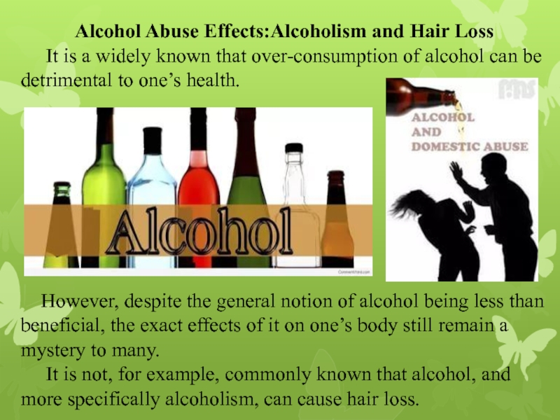 Слайд 14Alcohol Abuse Effects:Alcoholism and Hair Loss
