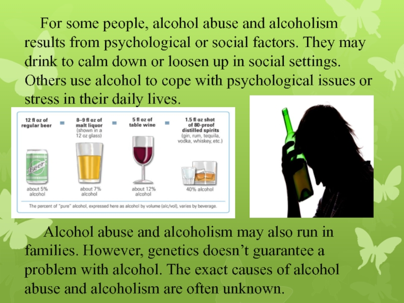 Слайд 10 For some people, alcohol abuse and alcoholism results