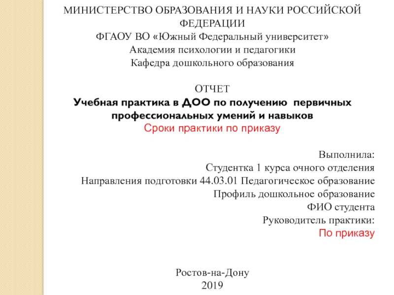 Руководитель от структурного подразделения ЮФУ Руководитель практики от профильной организации