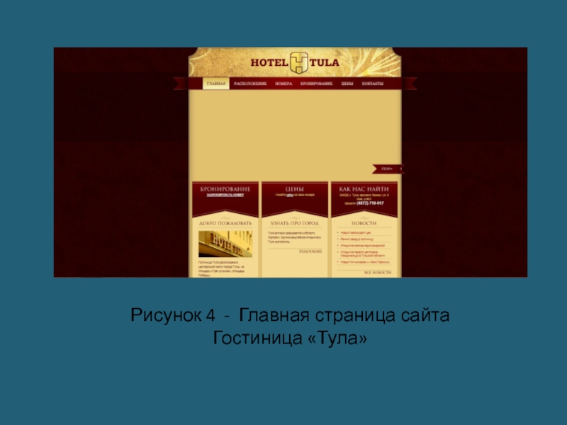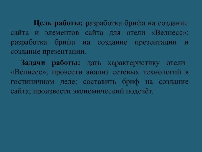 дисциплине «Программные средства разработки web-страниц и презентаций» на тему: Разработка брифа на изготовление сайта и элементов сайта для отель «Велнесс» Выполнила: ________________ "___"______ 2013 г Нгуен Х. Л. . Руководитель ________________ "___"______ 2013 г Танкиева Т.А. Тула, 2013Группа: 920711