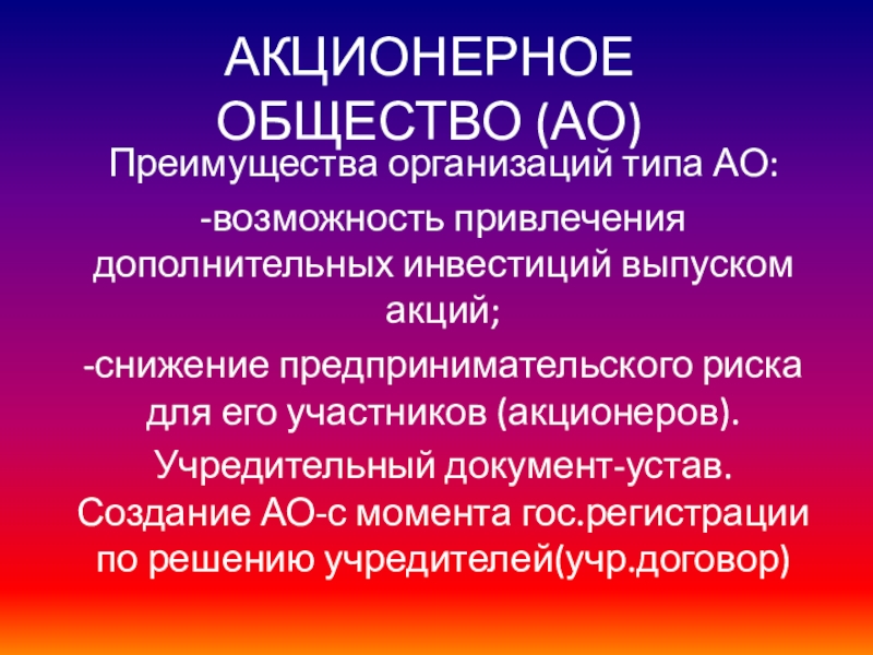 Преимущества организаций типа АО:
