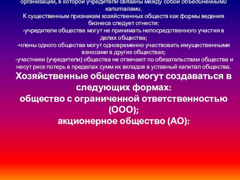 Слайд 16Хозяйственные общества – это корпоративная форма коммерческих организаций, в которой