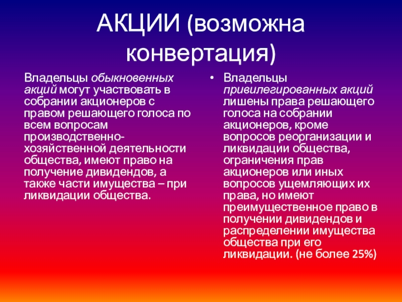 Слайд 23АКЦИИ (возможна конвертация)