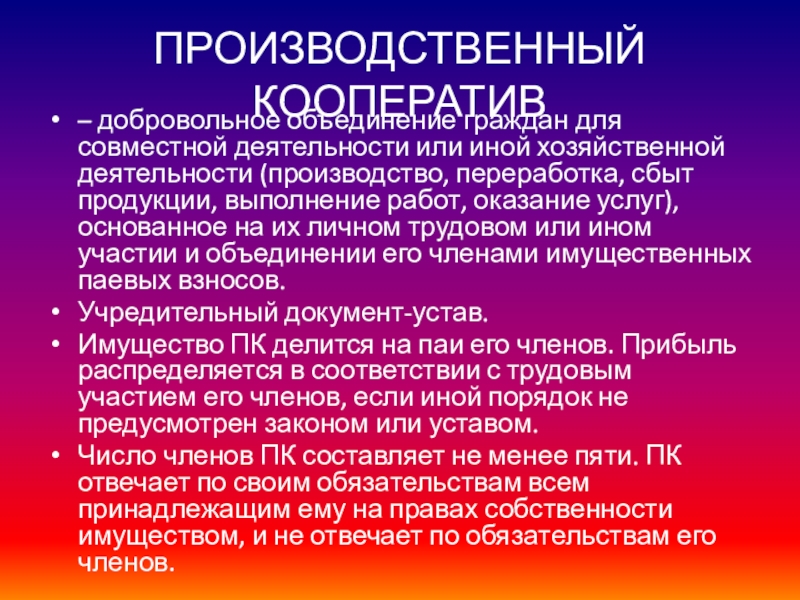 Слайд 25ПРОИЗВОДСТВЕННЫЙ КООПЕРАТИВ