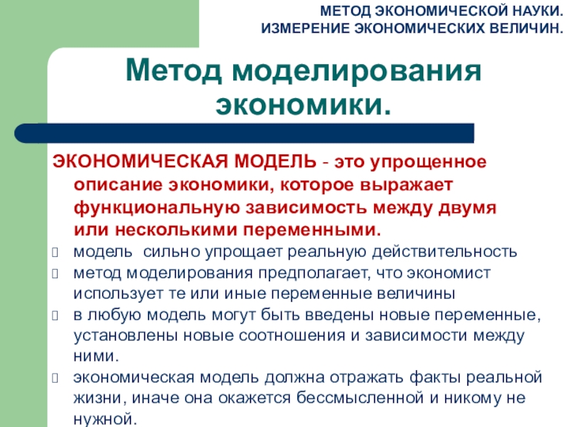Слайд 18Метод экономической науки. Измерение экономических величин.