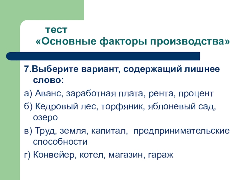 7.Выберите вариант, содержащий лишнее