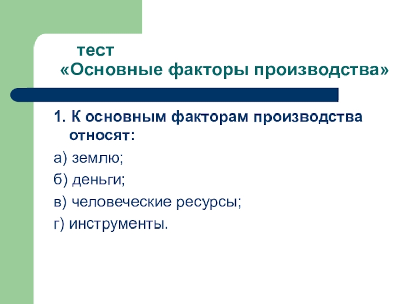 «Основные факторы производства»