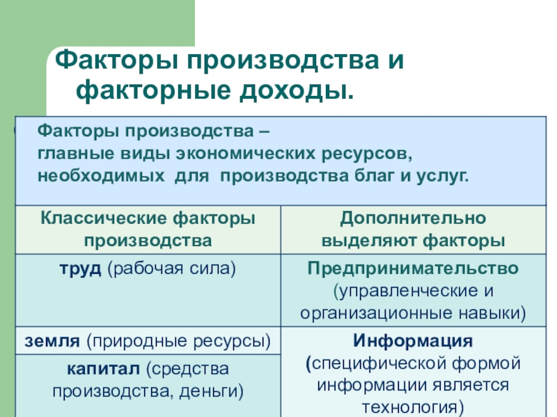 Слайд 8Факторы производства и факторные доходы.