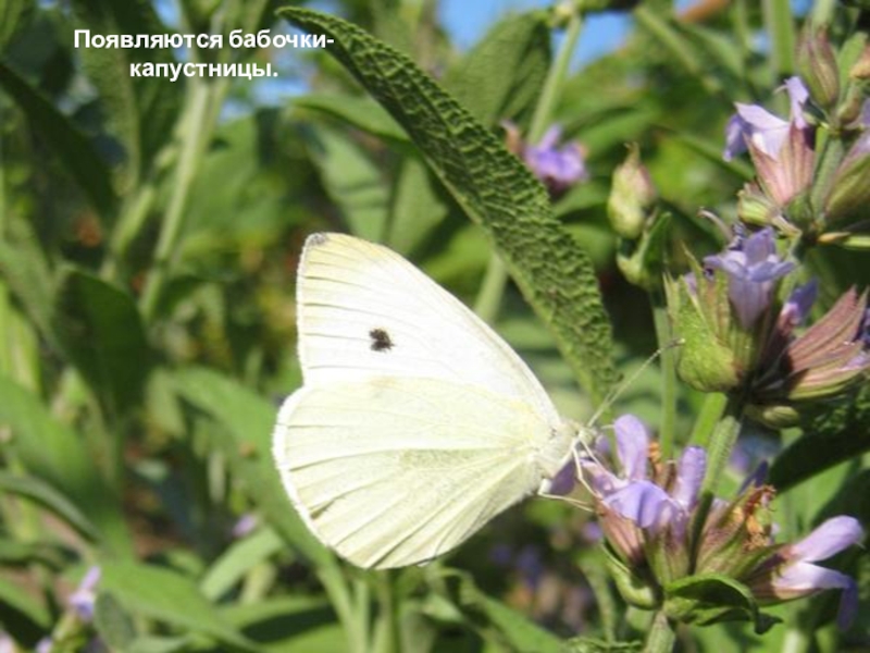 Слайд 13Появляются бабочки-капустницы.