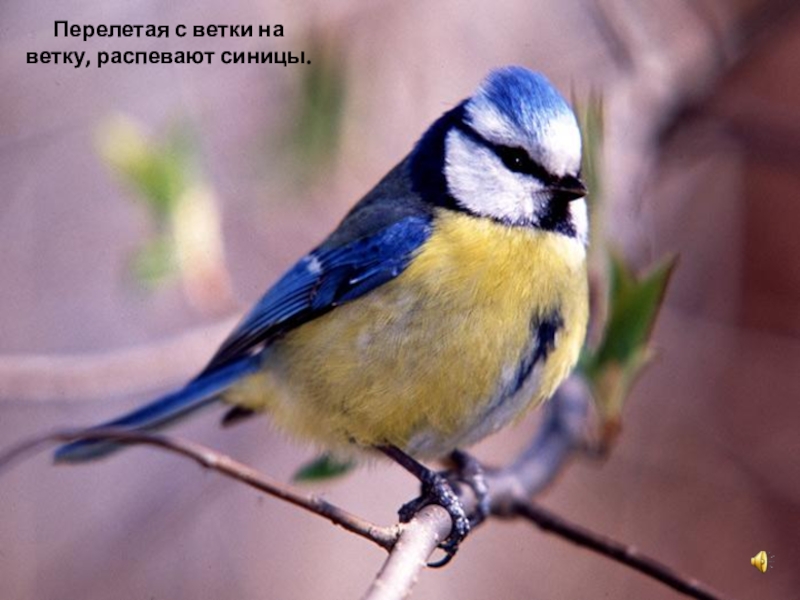Слайд 10Перелетая с ветки на ветку, распевают синицы.