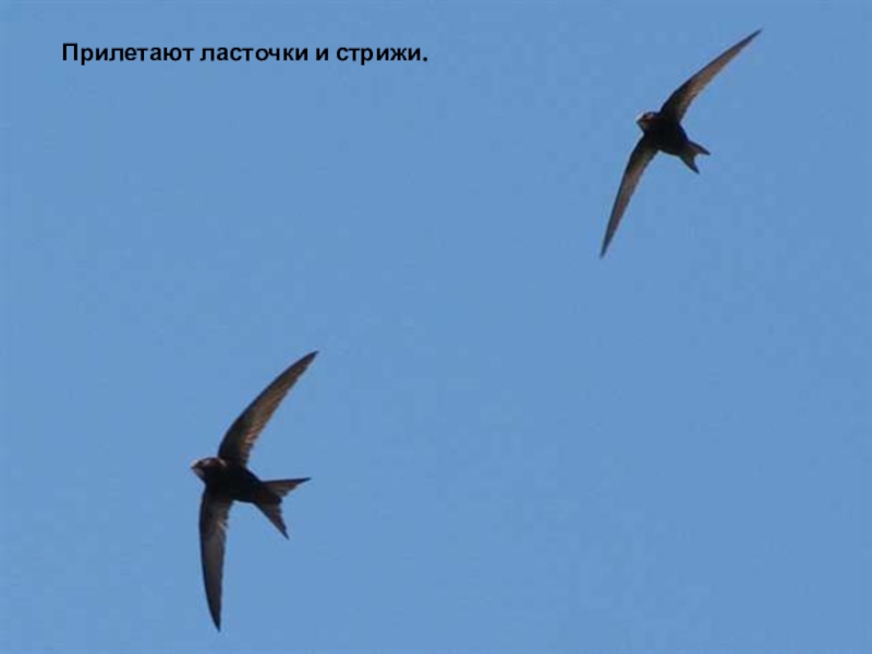 Слайд 15Прилетают ласточки и стрижи.