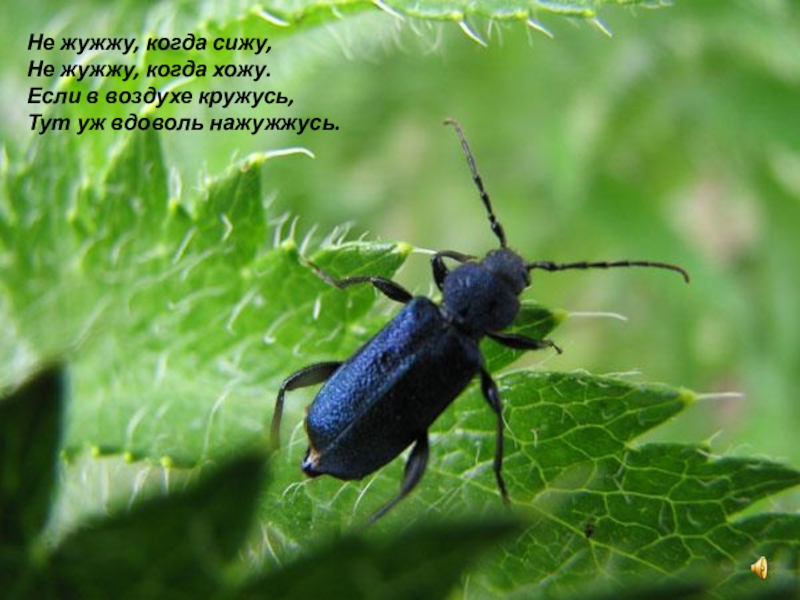 Слайд 8Не жужжу, когда сижу, Не жужжу, когда хожу. Если в воздухе кружусь, Тут уж вдоволь нажужжусь.