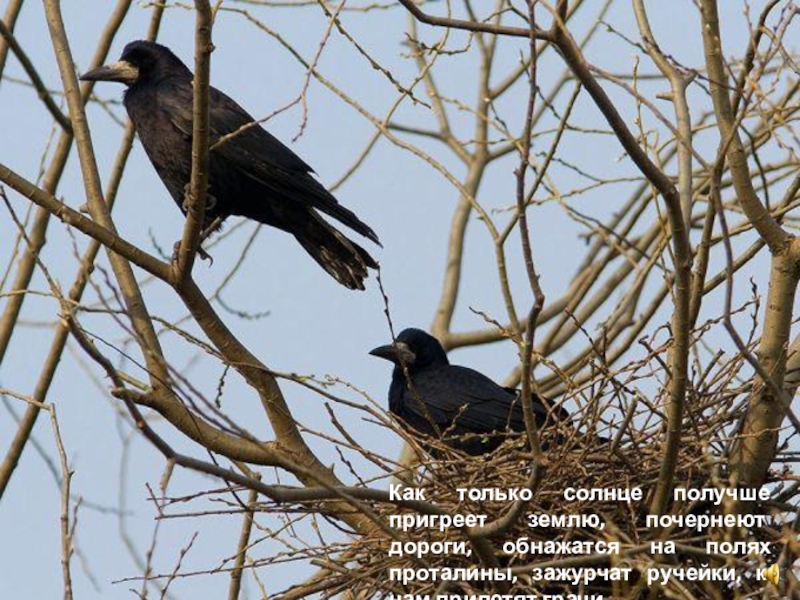 Слайд 12Как только солнце получше пригреет землю, почернеют дороги, обнажатся на